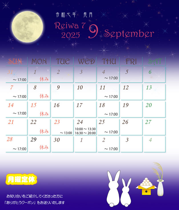 定休日:日・月曜日